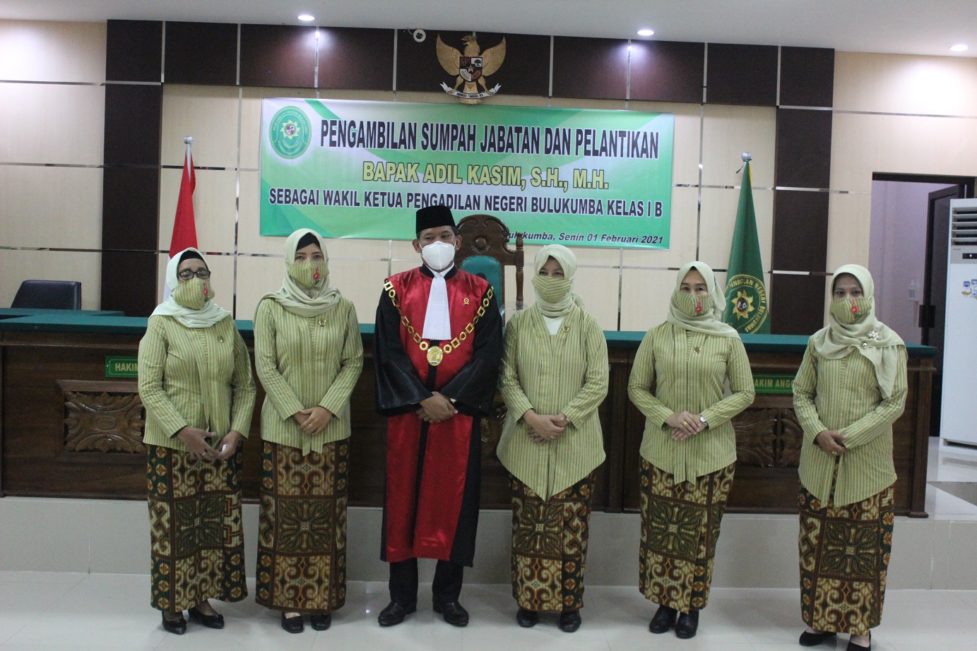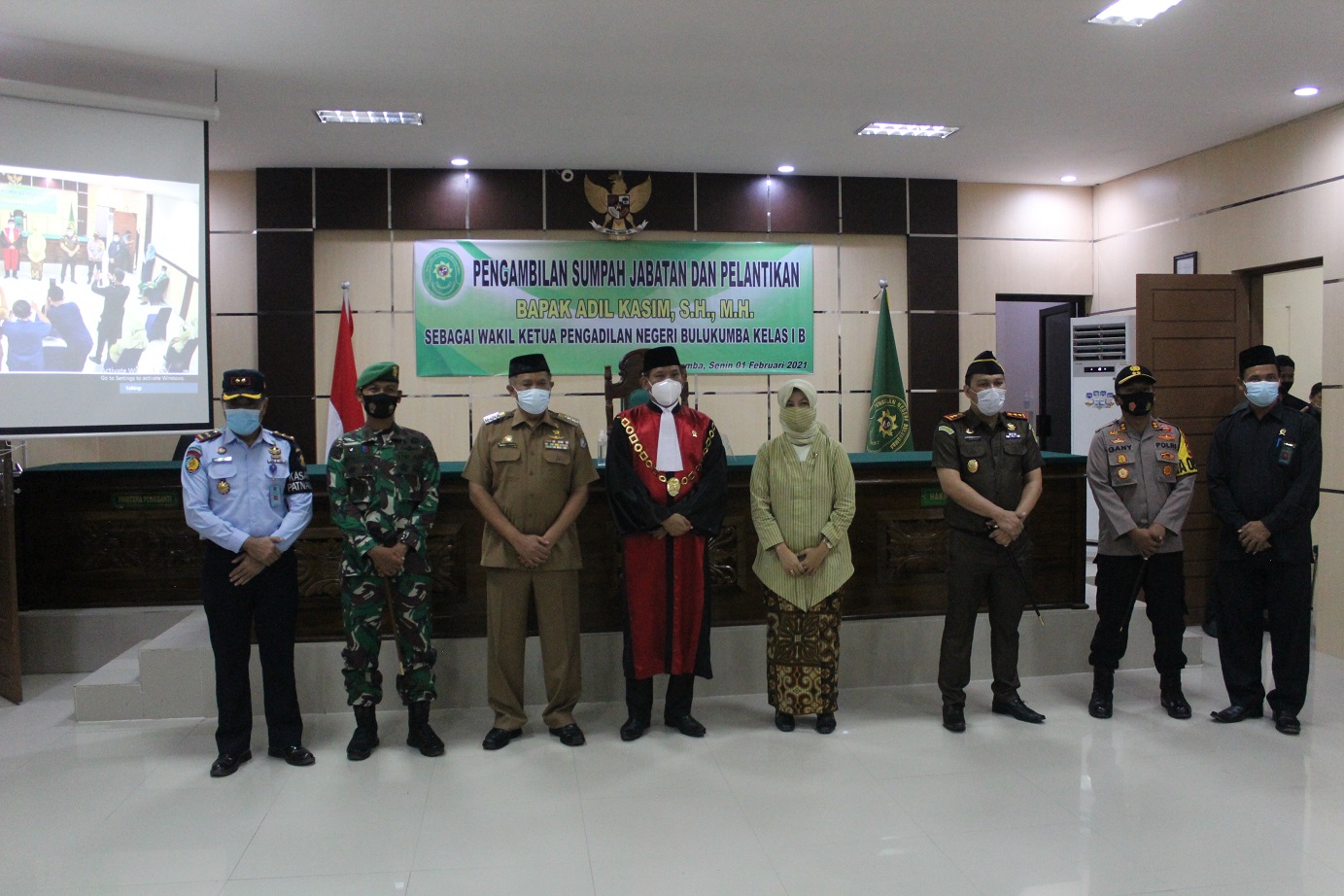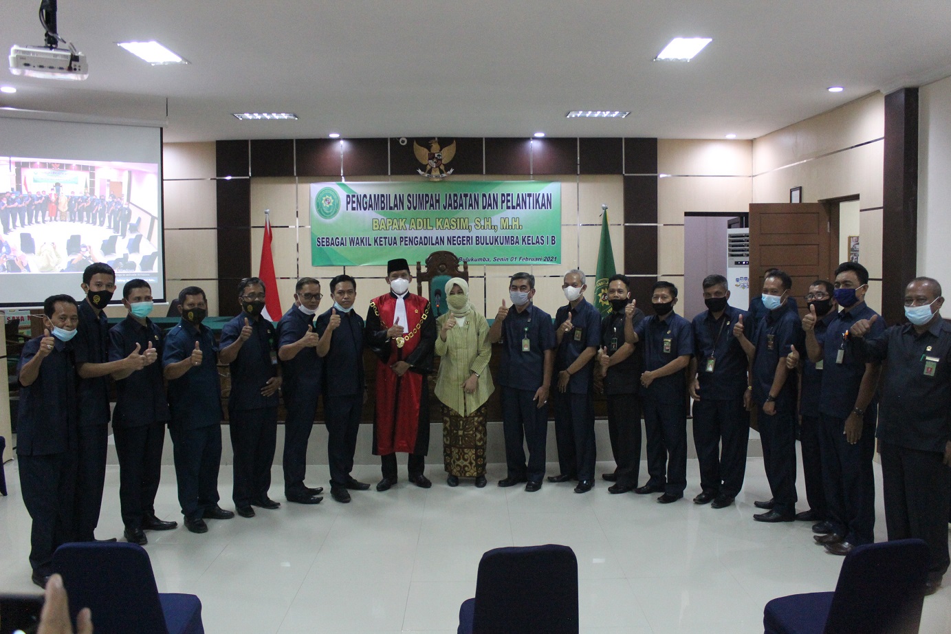 Bulukumba, Senin 01 Februari 2021 tepat pukul 10.00 WITA diruang Sidang Utama Kantor Pengadilan Negeri Bulukumba diselenggarakan acara Pengambilan Sumpah dan Pelantikan Wakil Ketua Pengadilan Negeri Bulukumba. Ketua Pengadilan Negeri Bulukumba, Bapak Khoiruman Pandu K. Harahap, SH, MH mengambil sumpah dan melantik Bapak Adil Kasim,SH,MH sebagai Wakil Ketua Pengadilan Negeri Bulukumba.