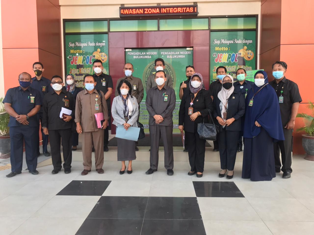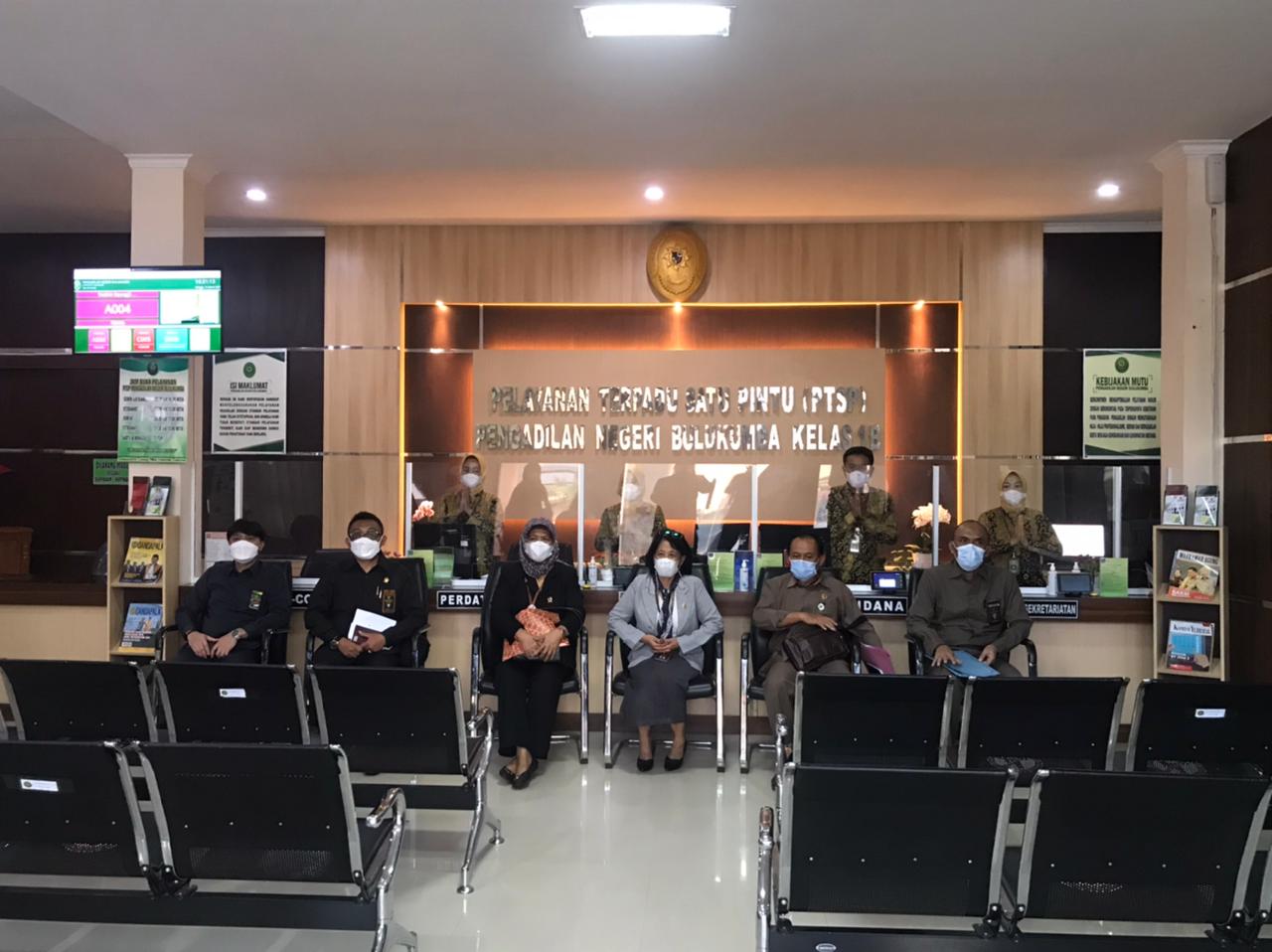 Senin, 16 Maret 2021, Hakim Tinggi dan Tim Penilai Pelayanan Terpadu Satu Pintu (PTSP) dari Pengadilan Tinggi Makassar berkunjung ke Pengadilan Negeri Bulukumba dalam rangka pembinaan & pendampingan untuk persiapan mengikuti Lomba PTSP dimana Pengadilan Negeri Bulukumba menjadi salah satu peserta yang ditunjuk untuk mengikuti Lomba PTSP tahun 2021.
