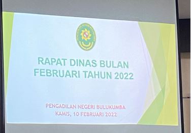 Bulukumba 11 Februari 2022. Bertempat di Ruang Sidang Utama Kantor Pengadilan Negeri Bulukumba, telah berlangsung rangkaian acara Rapat Dinas dan Sosialisasi Sosialisasi Hasil Pembinaan dan Pengawasan Ketua dan Hakim Tinggi Pengadilan Tinggi Makassar yang dipimpin oleh Bp. Adil Kasim, S.H., M.H. Ketua Pengadilan Negeri Bulukumba dan diikuti oleh segenap jajaan pejabat struktural, fungsional, paratur Pengadilan Neger Bulukumba