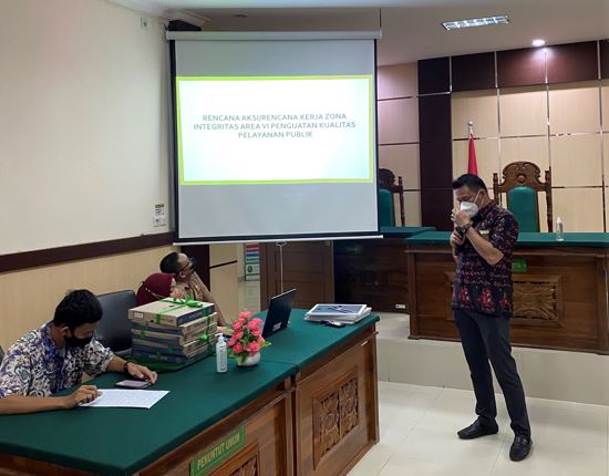 Bulukumba 10 Februari 2022. Bertempat di Ruang Sidang Utama Kantor Pengadilan Negeri Bulukumba telah dilaksanakan kegiatan Sosialisasi Program Kerja Zona Integritas pada setiap area oleh setiap koordinator area Zona Integritas. gram kerja yang telah ditetapkan ini akan menjadi acuan kegiatan selama 1 tahun.