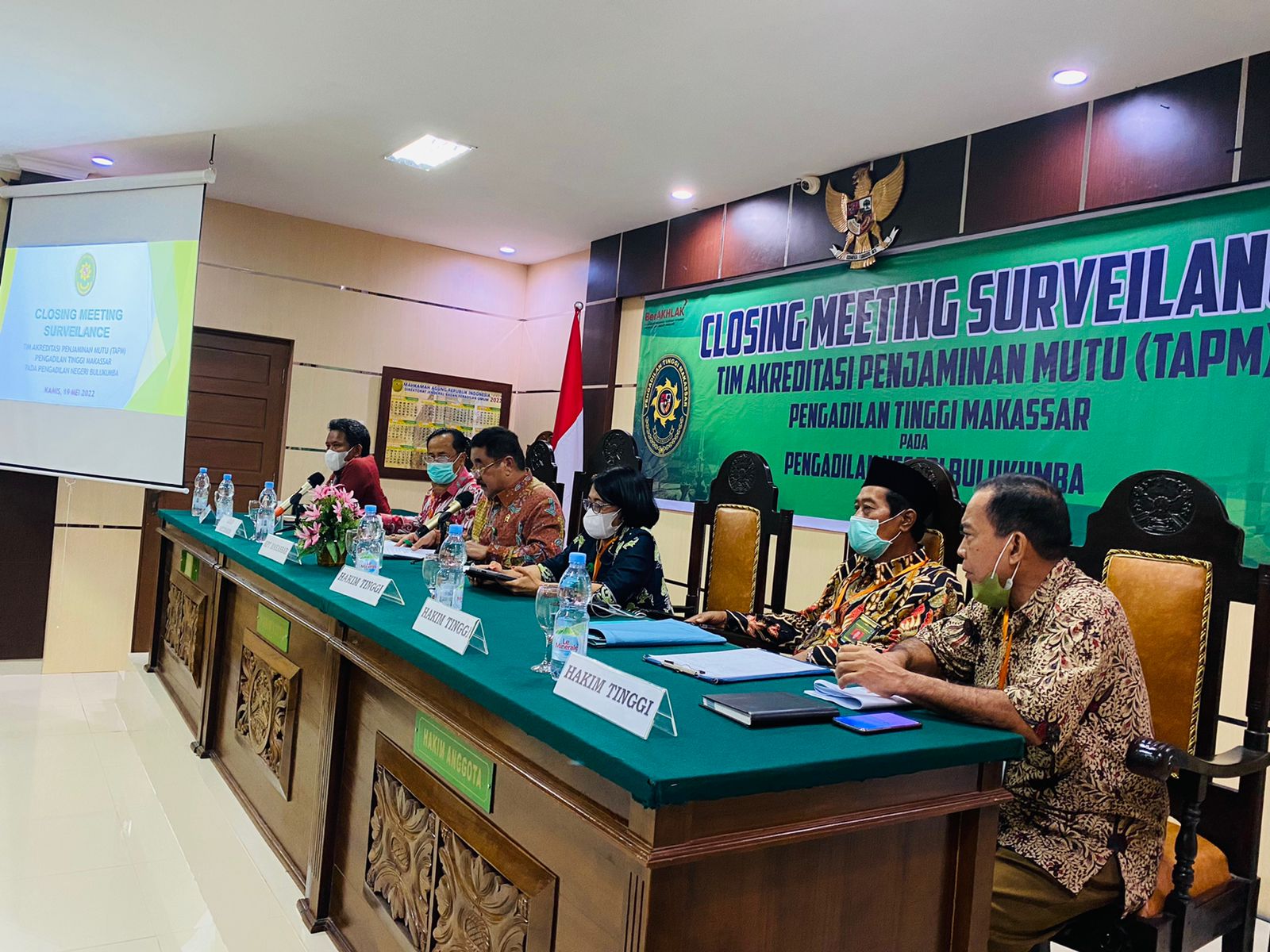 Ketua Pengadilan Tinggi Makassar Beserta Tim Akreditasi Penjaminan Mutu Pengadilan Tinggi Makassar Melaksanakan Kunjungan Asesment Surveilance dan Pembinaan Ke Pengadilan Negeri Bulukumba