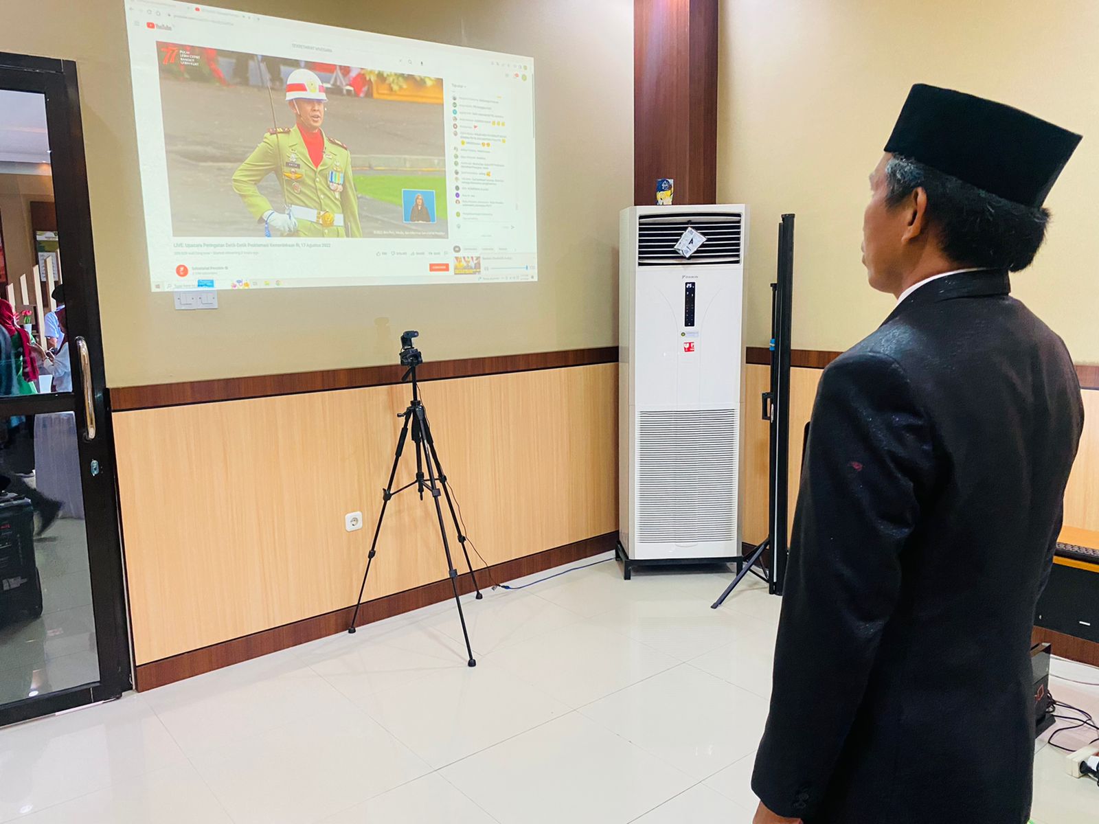 Bertempat di Ruang Media Center, Ketua Pengadilan Negeri Bulukumba Bpk. Dr. Adil Kasim, S.H., M.H mengikuti Pengibaran bendera secara virtual dalam rangka HUT Kemerdekaan Republik Indonesia ke 77