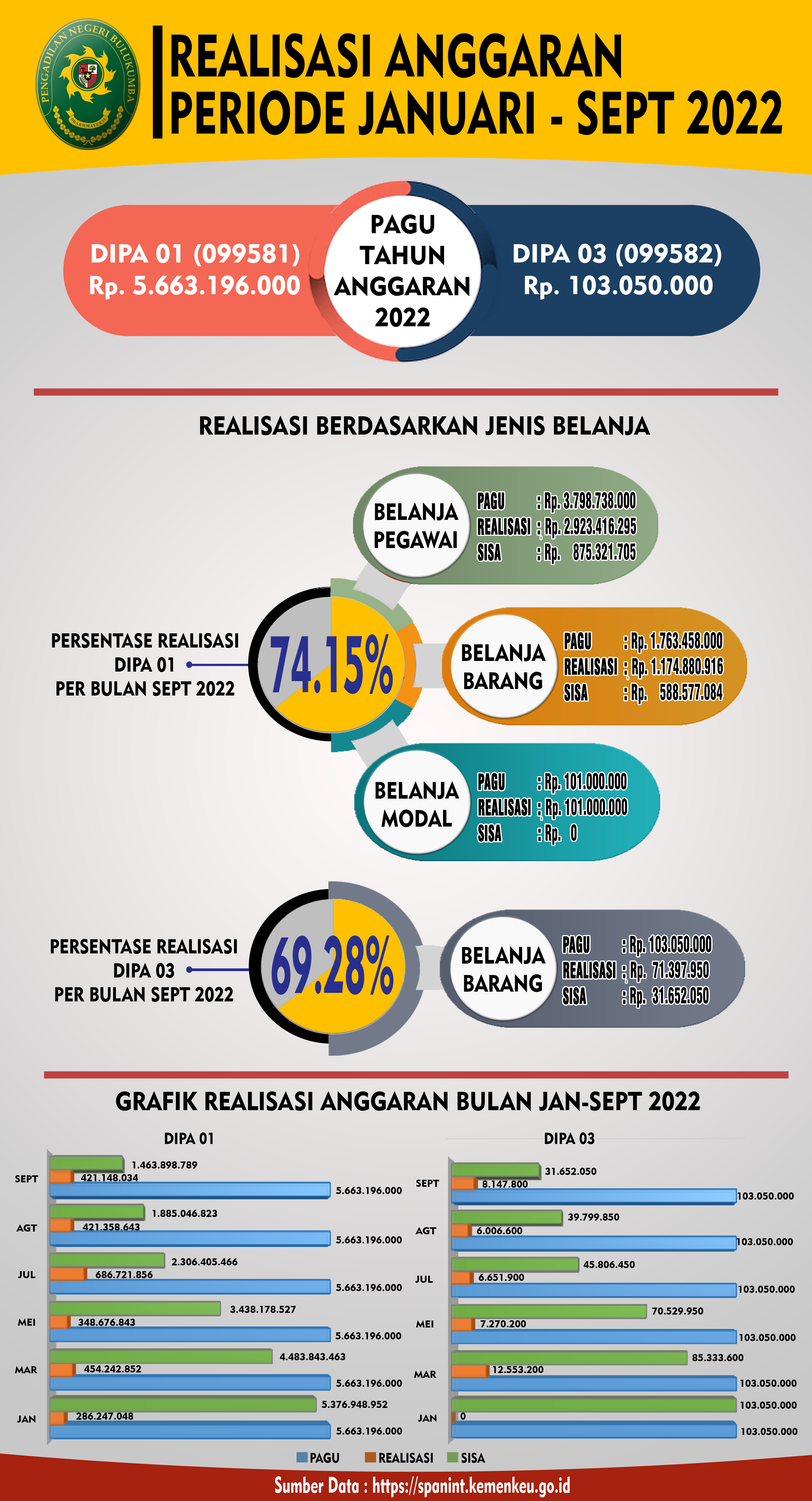 Infografis Realisasi Anggaran DIPA 01 dan DIPA 03 Pengadilan Negeri Bulukumba per Bulan September Tahun 2022