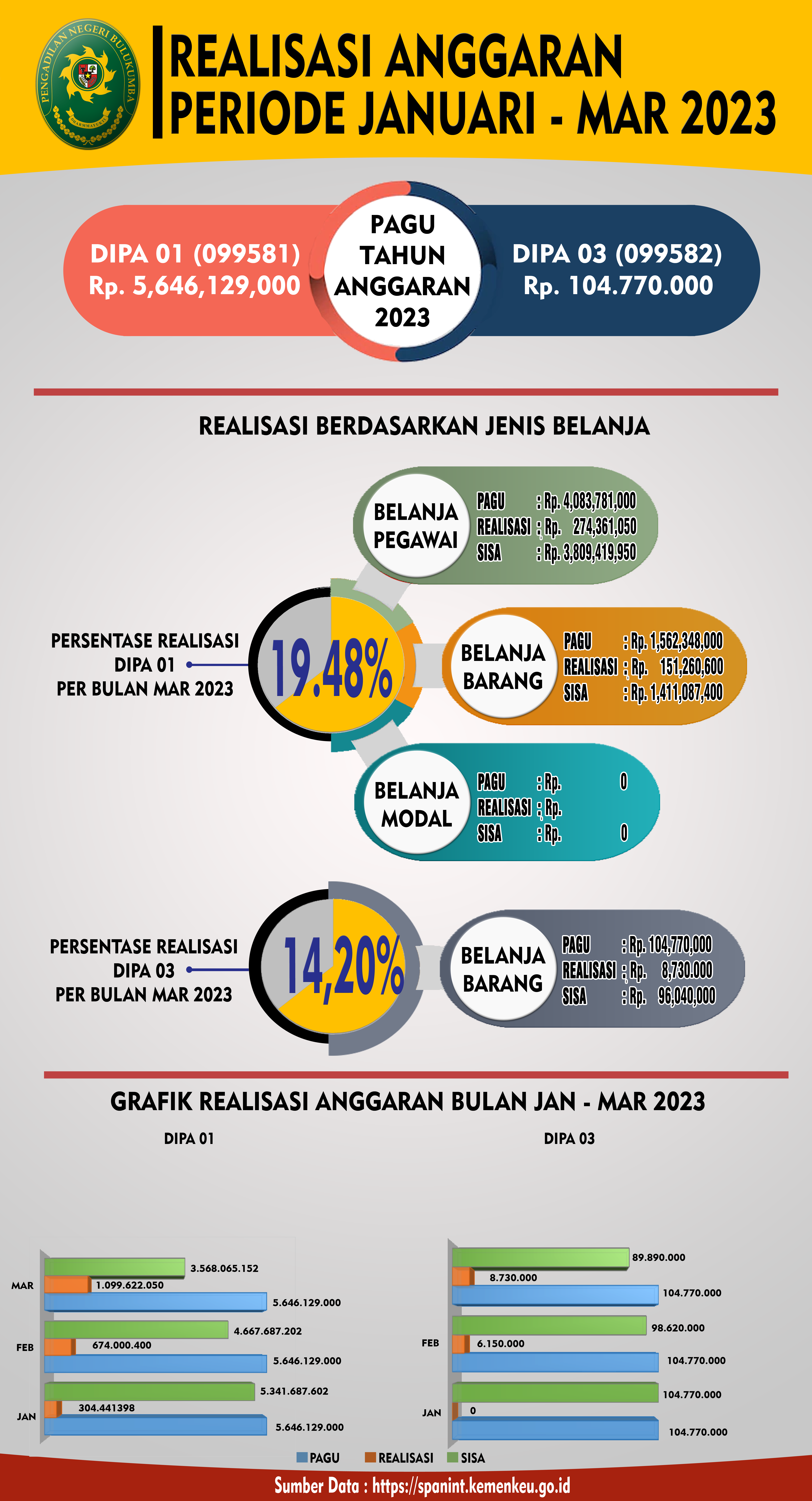 Infografis Realisasi Anggaran DIPA 01 & DIPA 03 Periode Januari – Maret Tahun 2023