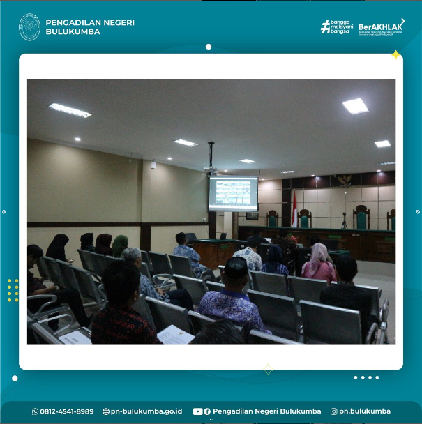 Bertempat di Kantor Pengadilan Negeri Bulukumba, Wakil Ketua Pengadilan Negeri Bulukumba Bapak Ujang Irfan Hadiana, S.H., Para Hakim, Panitera, Sekretaris dan seluruh ASN Pengadilan Negeri Bulukumba mengikuti kegiatan Pembinaan oleh Pimpinan Pengadilan Tinggi Makassar secara daring. Adapun agenda pada kegiatan tersebut adalah Pembinaan oleh Ketua Pengadilan Tinggi Makassar sehubungan dengan Bulan Suci Ramadhan dan sosialisasi dukungan atas Lomba Video Profil.