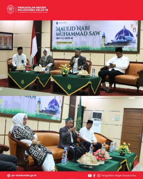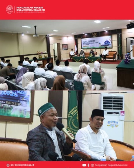 Bertempat di Pengadilan Negeri Bulukumba, telah dilaksanakan Peringatan Maulid Nabi Muhammad SAW 1447 H / 2025 M. Acara ini dihadiri oleh Ketua Pengadilan Negeri Bulukumba, YM Ibu Ernawaty, S.H., M.H., Wakil Ketua YM Bapak Ujang Irfan Hadiana, S.H., para Hakim, Panitera, Sekretaris, Pejabat Struktural/Fungsional, serta seluruh keluarga besar Pengadilan Negeri Bulukumba. Melalui momentum ini, keluarga besar Pengadilan Negeri Bulukumba berharap dapat semakin memperkokoh ukhuwah, meningkatkan keimanan, serta menjadikan akhlak Rasulullah SAW sebagai pedoman dalam menjalankan tugas dan pengabdian kepada masyarakat, bangsa, dan negara.
