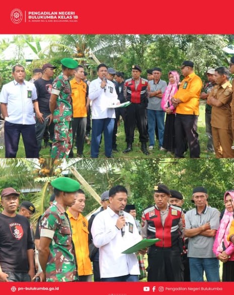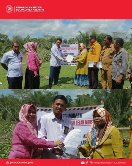 Pengadilan Negeri Bulukumba pada hari ini melaksanakan eksekusi perkara perdata Nomor 35/Pdt.G/2022/PN Blk Jo. Nomor 241/PDT/2023/PT Mks Jo. Nomor 1897 K/Pdt/2025. Objek eksekusi berupa sebidang tanah perumahan dan kebun seluas kurang lebih 5.939 m², Tanah tersebut merupakan bagian dari sebidang tanah dengan luas keseluruhan 7.088 m², dengan Nomor Obyek Pajak (NOP) 73 02.060.004.004-0081.0 dan 73 02.060.004.004-0079.0, atas nama wajib pajak Bibo Bin Dolleng. Lokasi tanah terletak di Kampung Karangkang Bantia, Desa Lembang, Kecamatan Kajang, Kabupaten Bulukumba. Kegiatan diawali dengan pengarahan dan doa bersama yang dipimpin langsung oleh Yang Mulia Ernawaty, S.H., M.H., (Ketua Pengadilan Negeri Bulukumba) dengan harapan agar seluruh rangkaian eksekusi dapat berjalan lancar, aman, serta diberi perlindungan dan kekuatan bagi seluruh petugas yang melaksanakannya. Selanjutnya, dilaksanakan apel persiapan eksekusi di halaman Polres Bulukumba, dipimpin oleh Kapolres Bulukumba didampingi Kabag Ops, sebagai bentuk sinergi antarlembaga dalam menjaga ketertiban dan kelancaran pelaksanaan tugas negara. Eksekusi dilaksanakan oleh Panitera PN Bulukumba, Bapak Angri Junanda, S.H., atas perintah Ketua Pengadilan Negeri Bulukumba. Turut mendampingi: Panitera Muda Perdata, Panitera Pengganti, Juru Sita, Jurusita Pengganti, serta seluruh tim eksekusi Pengadilan Negeri Bulukumba. Sebagai penutup kegiatan, dilaksanakan penyerahan Berita Acara Eksekusi oleh Panitera Pengadilan Negeri Bulukumba, Bapak Angri Junanda, S.H., kepada pihak terkait. Penyerahan ini menjadi bukti bahwa eksekusi telah resmi dilaksanakan sesuai dengan putusan pengadilan dan ketentuan hukum yang berlaku.