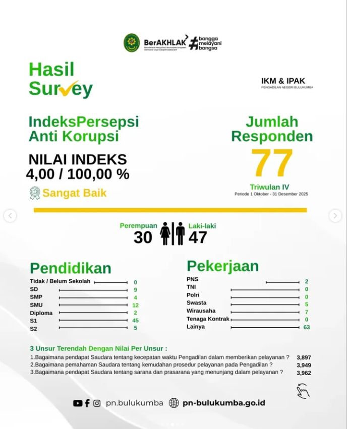Hasil Survei IKM dan IPAK Triwulan IV Pengadilan Negeri Bulukumba