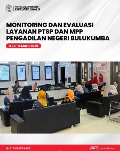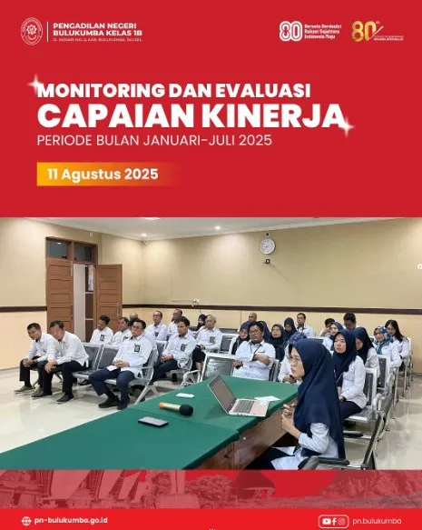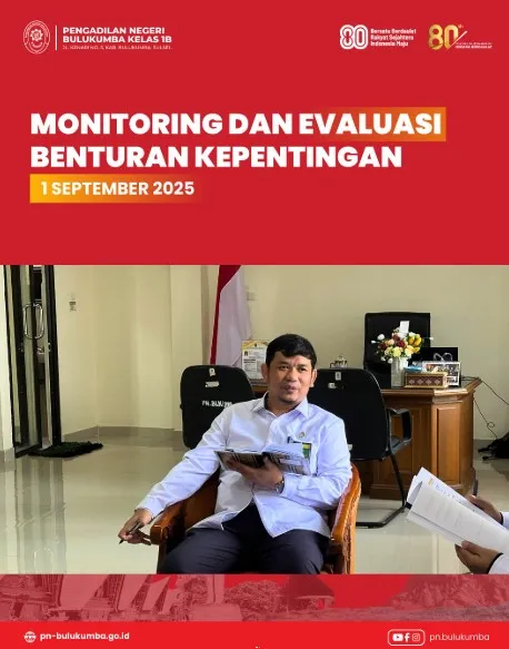Bulukumba, 01 September 2025 bertempat di Kantor Pengadilan Negeri Bulukumba telah dilaksanakan Monitoring dan Evaluasi...