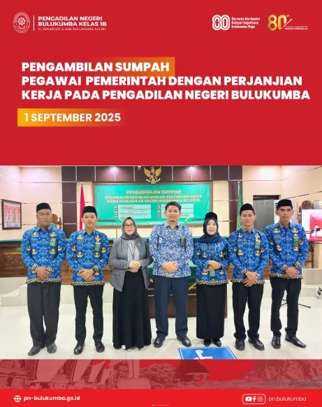 Bulukumba, 01 September 2025 Bertempat di Kantor Pengadilan Negeri Bulukumba telah dilaksanakan acara Pengambilan Sumpah...