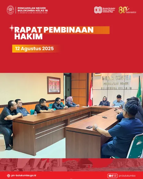 Bulukumba, 12 Agustus 2025 bertempat di Kantor Pengadilan Negeri Bulukumba telah dilaksanakan Rapat Pembinaan Hakim...