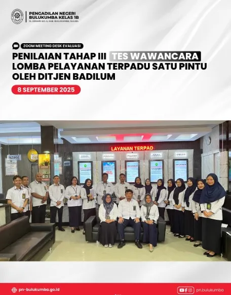 Bulukumba, 8 September 2025 Pengadilan Negeri Bulukumba telah mengikuti Penilaian Wawancara Teleconference dalam rangka Lomba...