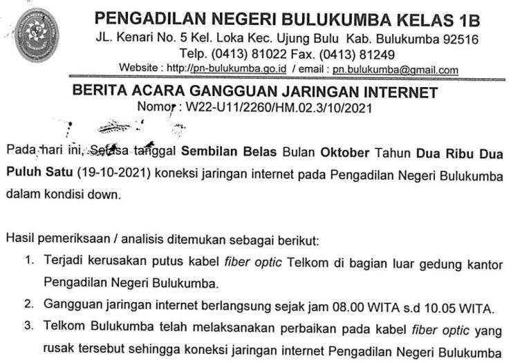 Gangguan Jaringan Internet Pengadilan Negeri Bulukumba