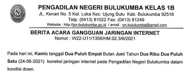 Gangguan Jaringan Internet Pengadilan Negeri Bulukumba