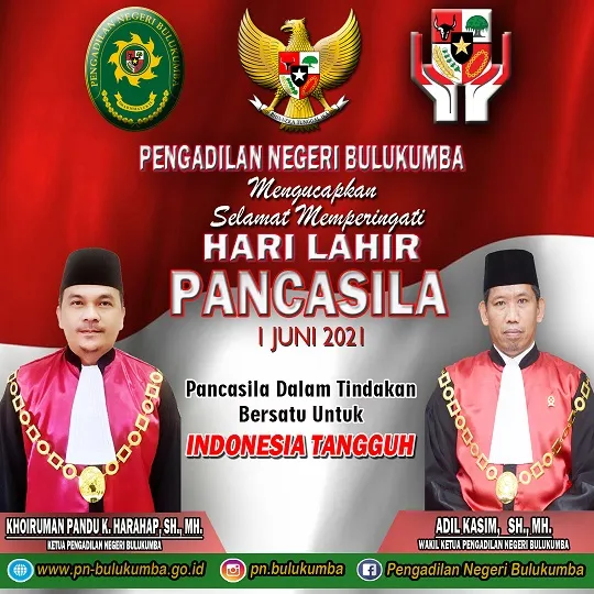Selasa, 1 Juni 2021. Pengadilan Negeri Bulukumba Mengucapkan Selamat Memperingati Hari Lahir Pancasila 1 Juni...