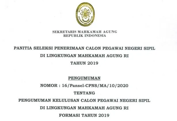 Pengumuman Kelulusan Cpns Di Lingkungan MA Formasi Tahun 2019