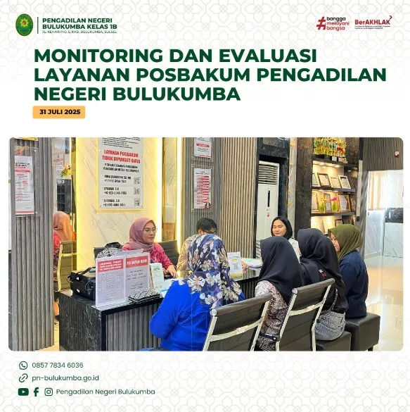 Bulukumba, 31 Juli 2025 bertempat di Kantor Pengadilan Negeri Bulukumba telah dilaksanakan Monitoring dan Evaluasi...