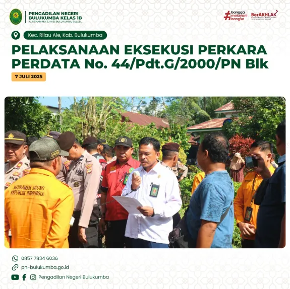 Bulukumba, 07 Juli 2025 bertempat di Desa Swatani Kec. Rilauale Kabupaten Bulukumba telah dilaksanakan eksekusi...