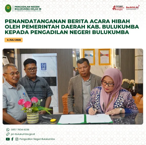 Bulukumba, 4 Juli 2025 Telah dilaksanakan penandatanganan Berita Acara Serah Terima Hibah dari Pemerintah Daerah...