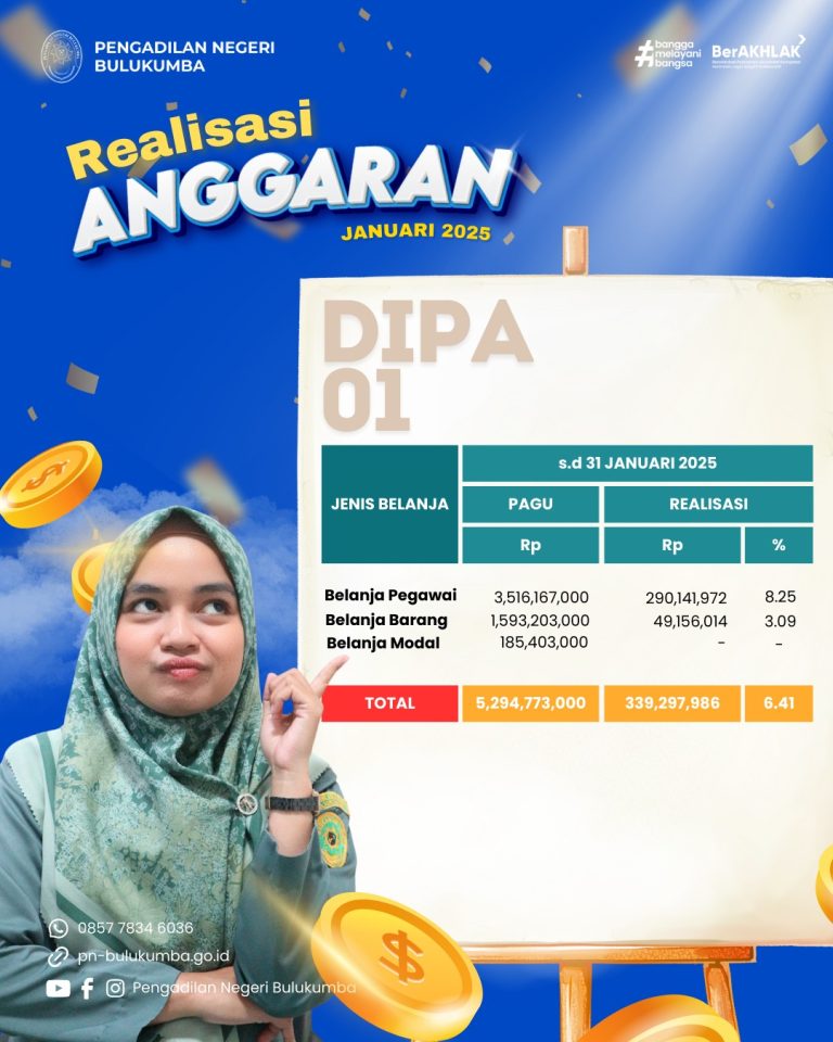 Bulukumba, Senin 3 Februari 2025. Infografis Realisasi Anggaran DIPA 01 dan DIPA 03 Pengadilan Negeri...
