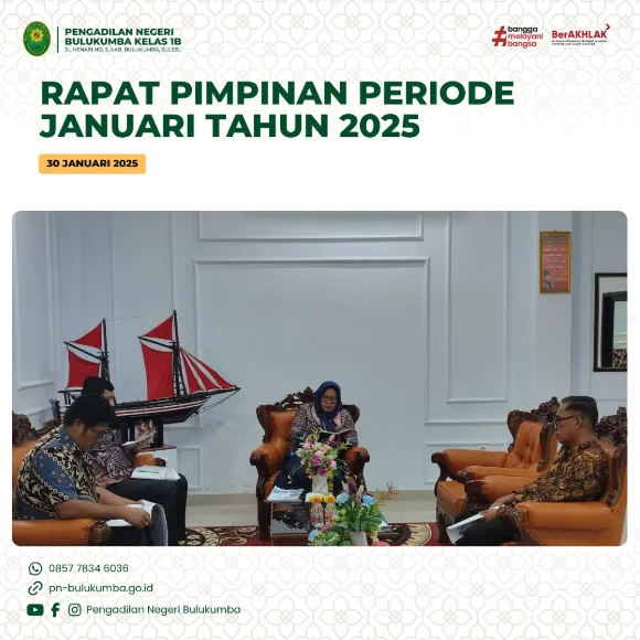 Bulukumba, 30 Januari 2025 bertempat di Kantor Pengadilan Negeri Bulukumba telah dilaksanakan Rapat Pimpinan Periode...