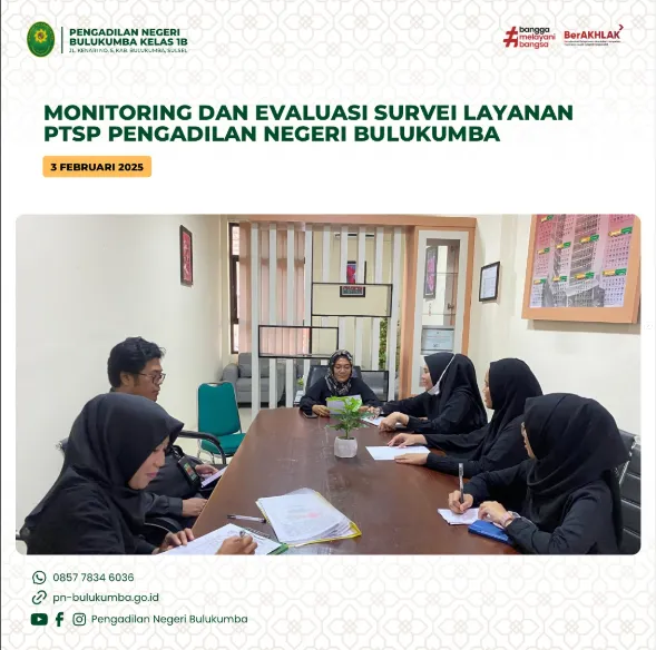 Bulukumba, 3 Februari 2025 bertempat di Kantor Pengadilan Negeri Bulukumba telah dilaksanakan Monitoring dan Evaluasi...