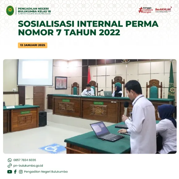 Bulukumba, 13 Januari 2025 bertempat di Kantor Pengadilan Negeri Bulukumba diadakan Sosialisasi PERMA 7 Tahun...