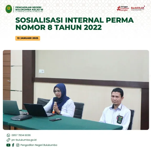 Bulukumba, 13 Januari 2025 telah dilaksanakan Sosialisasi Internal Perma Nomor. 8 Tahun 2022 tentang Perubahan...