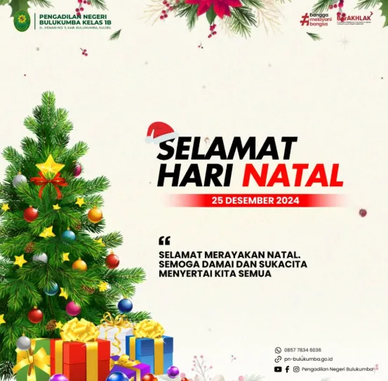 Keluarga besar Pengadilan Negeri Bulukumba mengucapkan, Selamat Hari Natal 25 Desember 2024.