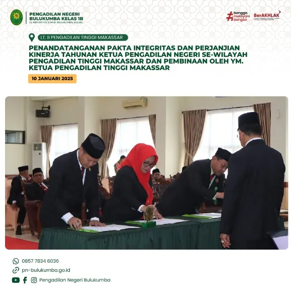 Makassar, 10 Januari 2025. Ketua Pengadilan Negeri Bulukumba mengikuti Penandatanganan Pakta Integritas dan Perjanjian Kinerja...