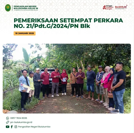 Bulukumba, 10 Januari 2025 Pengadilan Negeri Bulukumba telah melaksanakan Pemeriksaan Setempat (PS) atas Objek perkara...