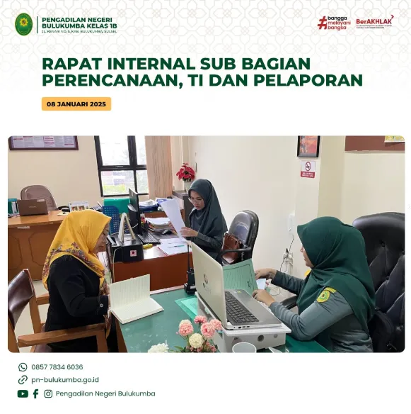 Bulukumba, 9 Januari 2025 bertempat di ruang Media Center telah dilaksanakan rapat internal bagian Kepaniteraan...