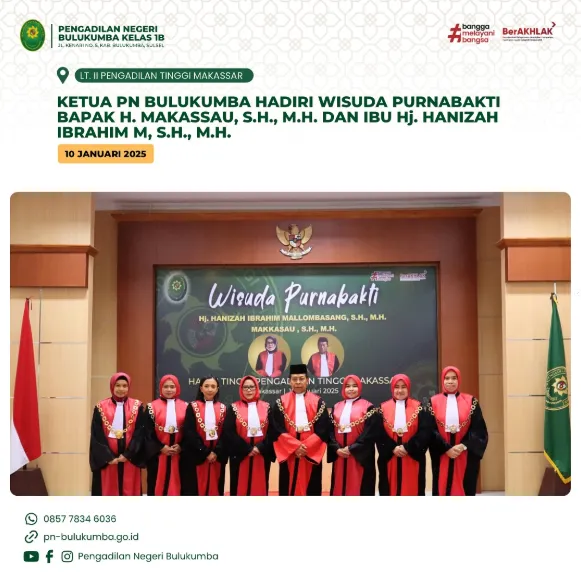 Makassar, 10 Januari 2025. Ketua Pengadilan Negeri Bulukumba mengikuti Wisuda Purnabakti Bapak H. Makassau, S.H.,...