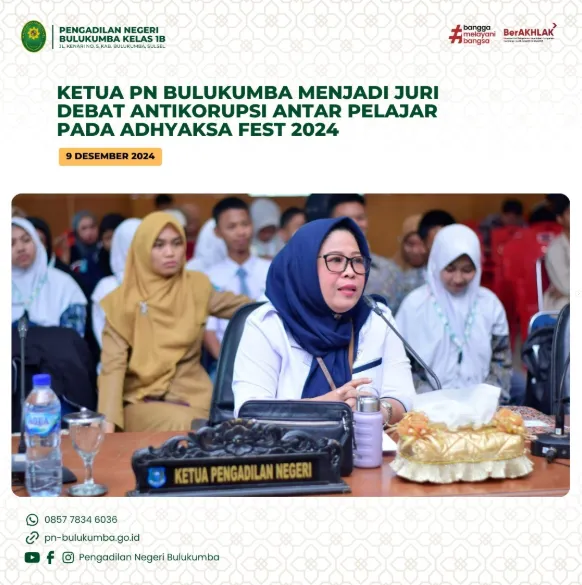 Bulukumba, 9 Desember 2024 Ketua Pengadilan Negeri Bulukumba turut hadir dalam kegiatan Debat Antikorupsi Pelajar...