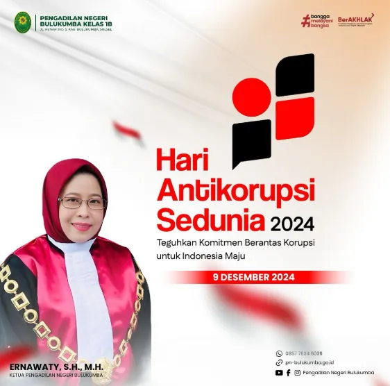 Segenap keluarga besar Pengadilan Negeri Bulukumba mengucapkan, Hari Anti Korupsi Sedunia 9 Desember 2024. “Teguhkan...