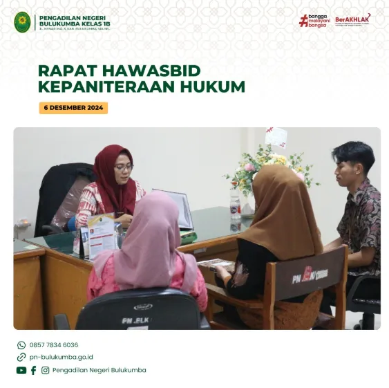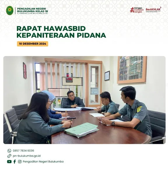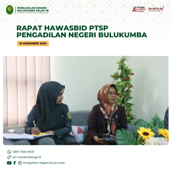Bulukumba, 10 Desember 2024 Bertempat di Kantor Pengadilan Negeri Bulukumba, telah dilaksanakan Rapat Hawasbid PTSP...