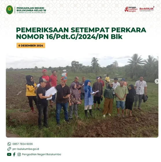 Bulukumba, 6 Desember 2024 Pengadilan Negeri Bulukumba telah melaksanakan Pemeriksaan Setempat (PS) atas Objek perkara...