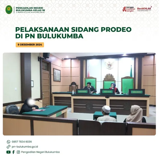 Bulukumba, 9 Desember 2024 Pengadilan Negeri Bulukumba telah melaksanakan sidang Perkara Prodeo. Kegiatan ini dipimpin...