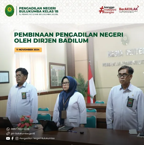 Bulukumba,Kamis 14 November 2024. Berdasarkan Surat Nomor : 2812/SEK.PN.W22-U11/PL1.2.3/XI/2024. Pengadilan Negeri Bulukumba dengan perantara Kantor Pelayanan...