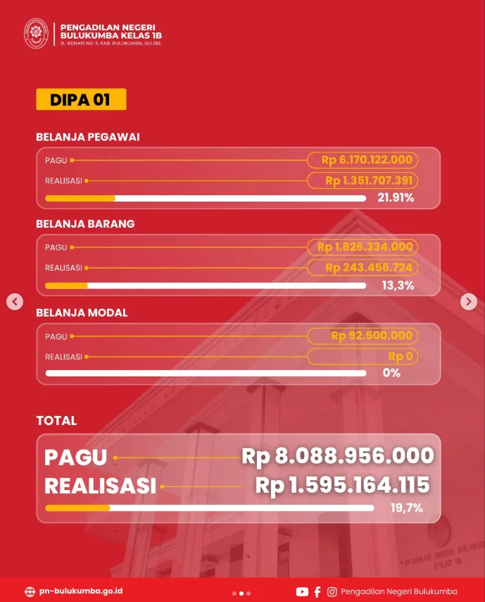 REALISASI ANGGARAN DIPA 01 dan DIPA 03 Tahun 2026 Pengadilan Negeri Bulukumba Klik Link Laporan...