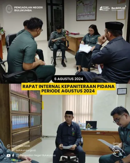 Bulukumba, 6 Agustus 2024 bertempat di ruang Kepaniteraan Pidana telah dilaksanakan rapat internal bagian Kepaniteraan...