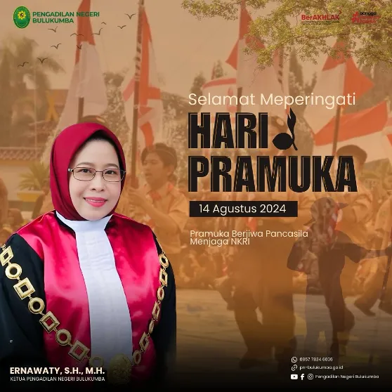 Pimpinan dan Seluruh Keluarga Besar Pengadilan Negeri Bulukumba mengucapkan Selamat Hari Pramuka 14 Agustus 2024....
