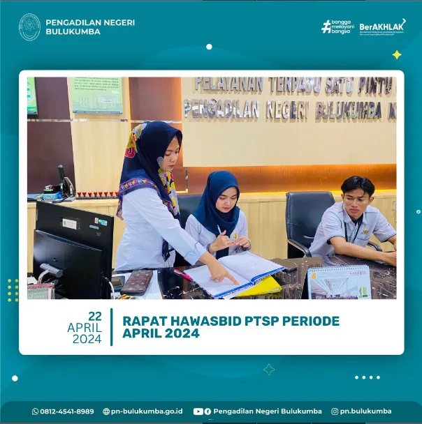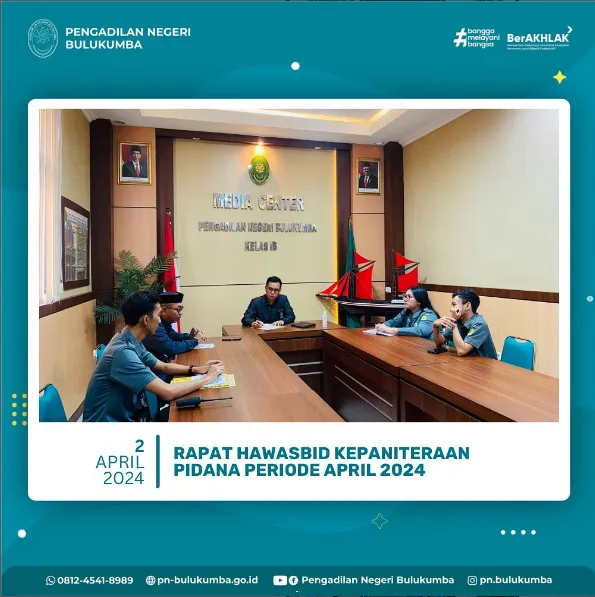 Bulukumba, 22 April 2024 bertempat di ruang PTSP Pengadilan Negeri Bulukumba telah dilaksanakan Rapat Hawasbid...