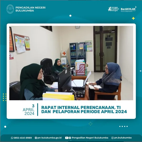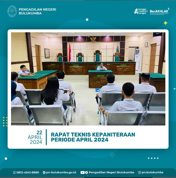 Bulukumba, 22 April 2024 bertempat di Kantor Pengadilan Negeri Bulukumba telah dilaksanakan Rapat Teknis Kepaniteraan...