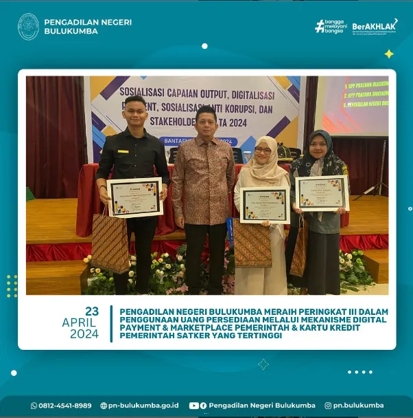 Pengadilan Negeri Bulukumba Meraih Peringkat III Dalam Penggunaan Uang Persediaan Melalui Mekanisme Digital Payment & Marketplace Pemerintah Yang Tertinggi