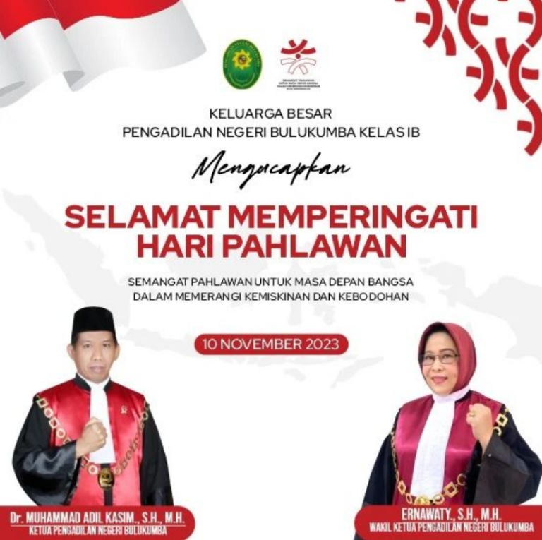 Keluarga Besar Pengadilan Negeri Bulukumba Kelas IBMengucapkanSelamat Memperingati Hari Pahlawan10 November 2023 “SEMANGAT PAHLAWAN UNTUK...