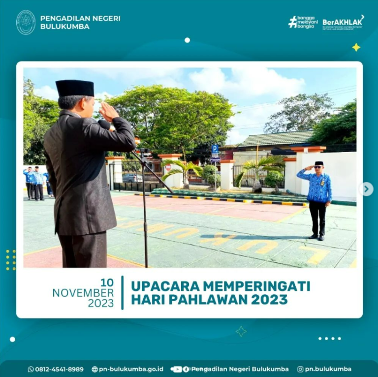 Bulukumba, Jum’at 10 November 2023 Pengadilan Negeri Bulukumba telah melaksanakan Upacara Peringatan Hari Pahlawan 2023,...