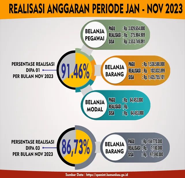 Infografis Realisasi Anggaran DIPA 01 & DIPA 03 Periode Januari – November Tahun 2023