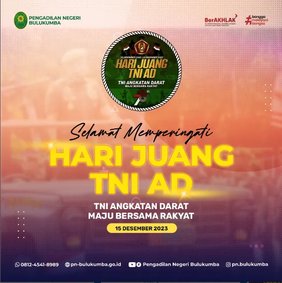 Segenap Pimpinan dan Keluarga Besar Pengadilan Negeri Bulukumba mengucapkan Selamat Memperingati Hari Juang TNI AD “TNI...