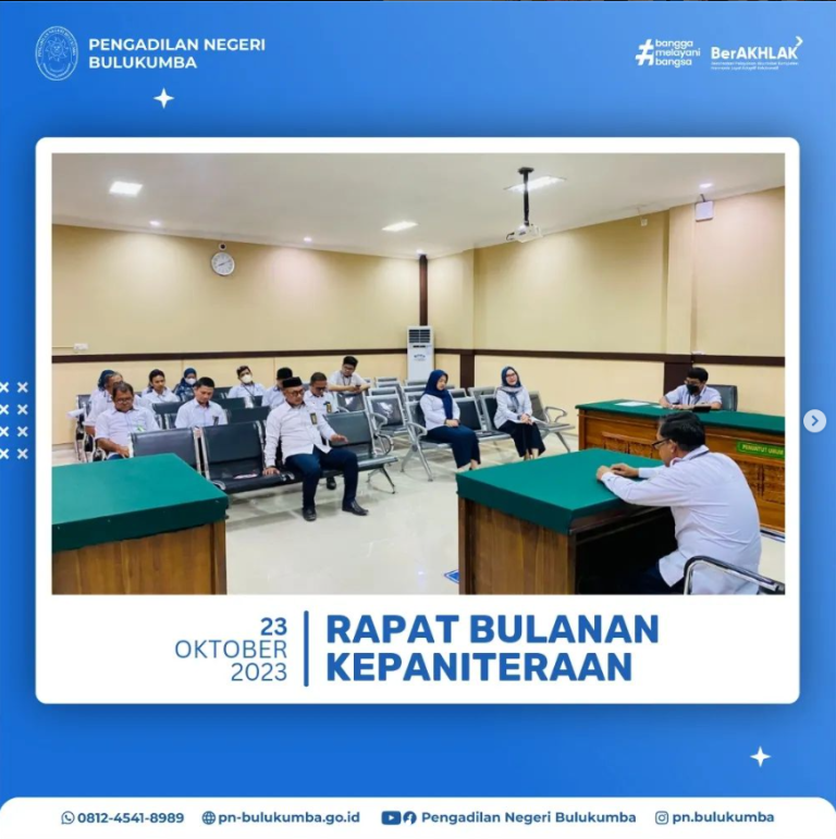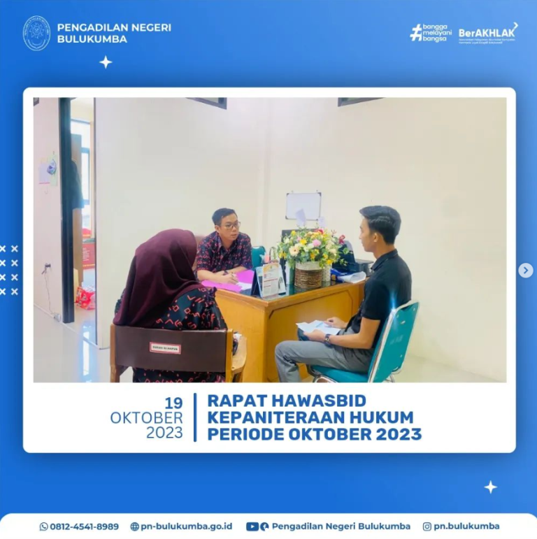Bulukumba, 20 Oktober 2023 – Bertempat di Ruang Media Center Pengadilan Negeri Bulukumba telah dilaksanakan...